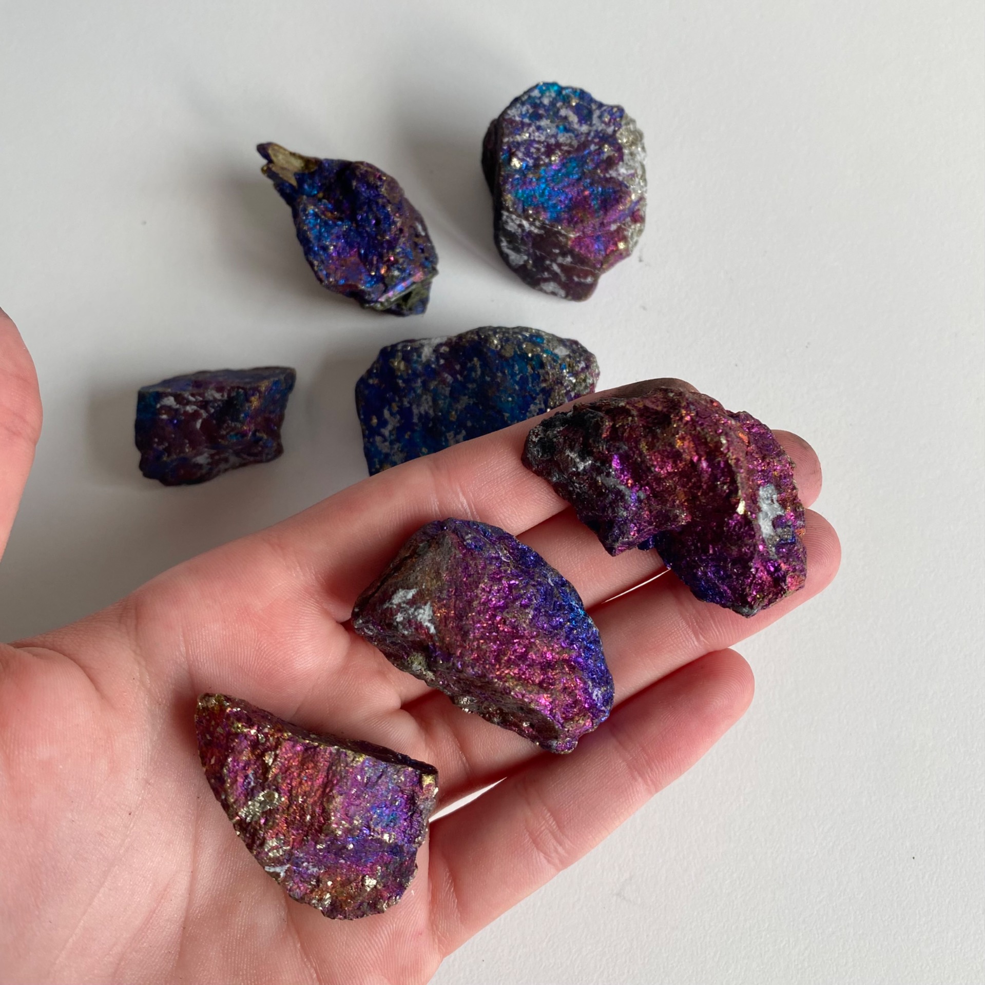 Propiedades Palo Santo: El palo santo es conocido por su capacidad de limpiar energías negativas y atraer vibraciones positivas. Su aroma calmante promueve la paz, la relajación y mejora la conexión espiritual, siendo ideal para rituales de purificación y meditación. ¿Cómo realizar la limpieza de tus minerales? Enciende el palo santo : Préndelo hasta que salga una llama y apágala dejando que el humo se mantenga constante. Pasa el humo por los minerales : Coloca las piedras en tus manos o sobre una superficie y dirige el humo hacia ellas, cubriéndolas por completo. Intención : Mientras limpias, visualiza cómo las energías negativas se disuelven y las piedras recuperan su pureza energética. Apaga el palo santo : Sofócalo en un recipiente resistente al calor. *Precio por 3 unidades de palo santo. Tamaño: 8 - 10cm aprox.